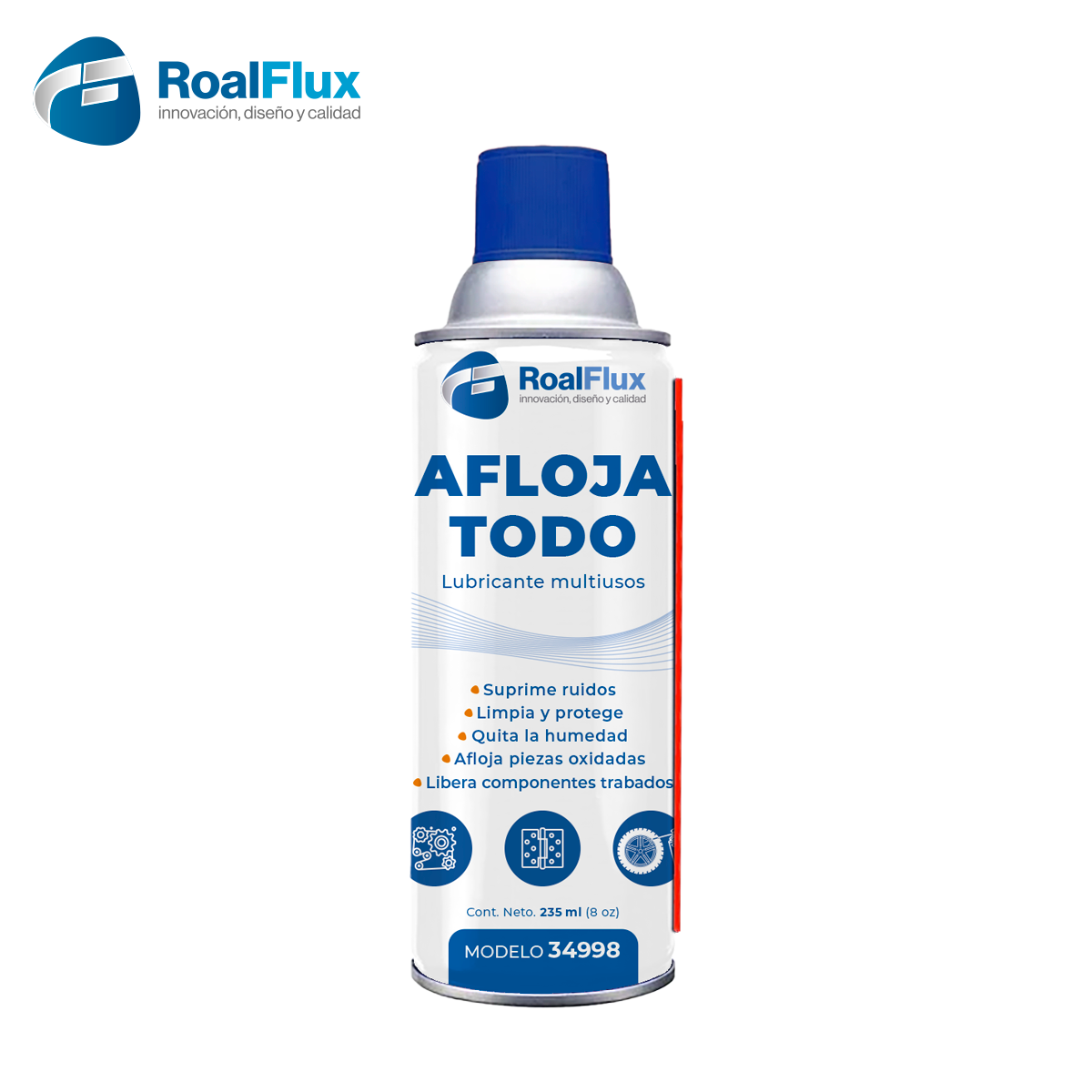 Marca: RoalFlux Contenido: 235ml Características: – Suprime ruido – Limpia y protege – Quita la humedad – Afloja piezas oxidadas – Libera componentes trabados