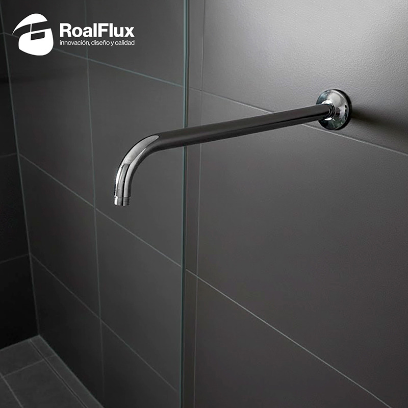 Marca: RoalFlux Material: Acero inoxidable Acabado: Cromado Medida rosca: 1/2″ Rosca: NPT Longitud: 40 cm Diámetro del chapetón: 5 cm