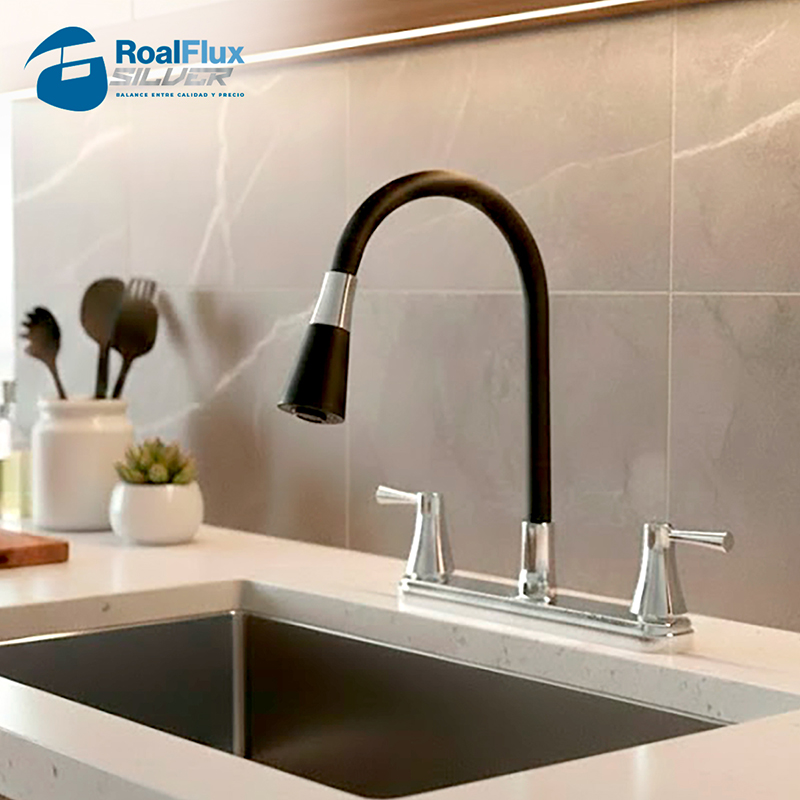 Cuello de desfogue: Acero inoxidable cubierto con silicona con aireador y suavizador de agua