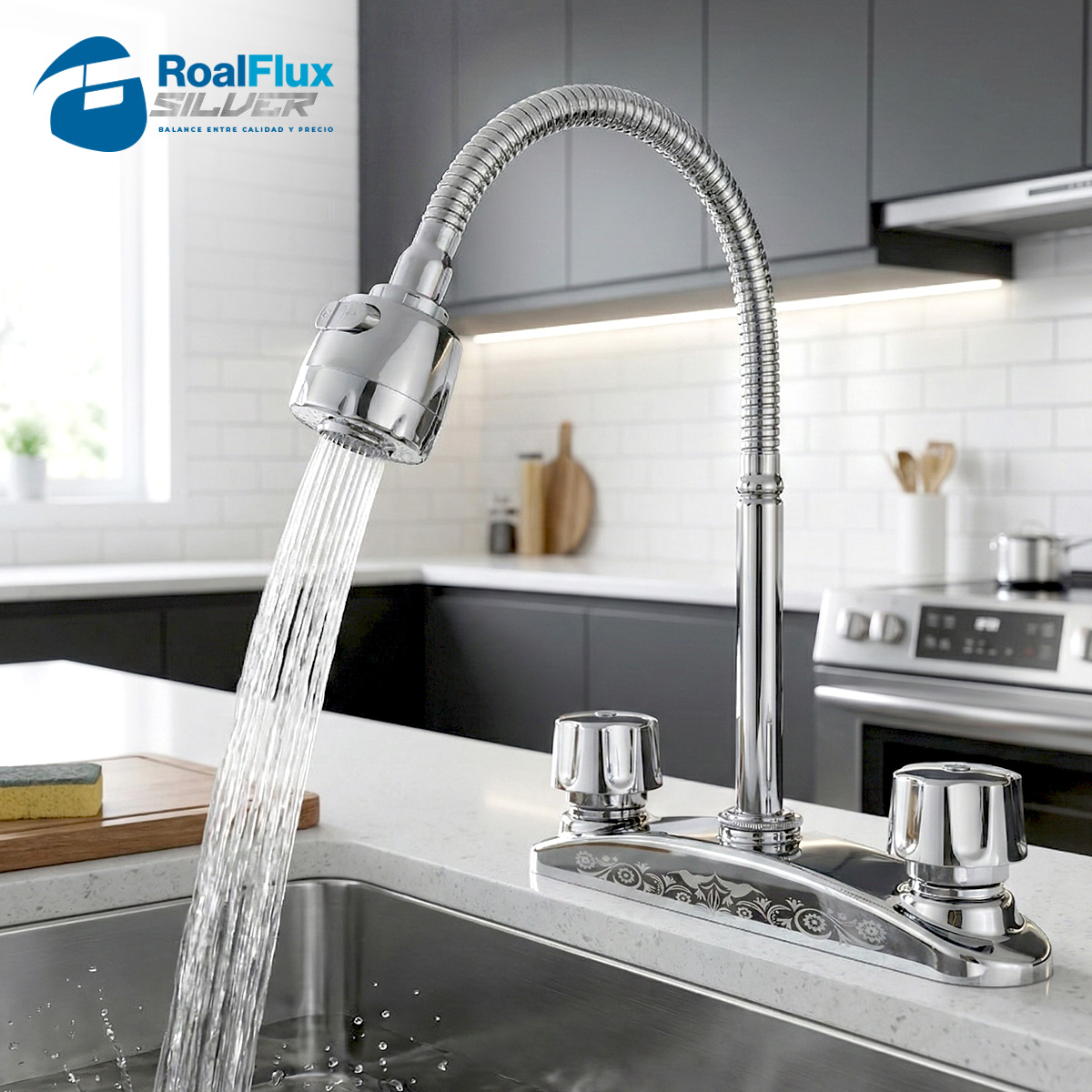 Cuello de desfogue: Flexible de acero inoxidable con aireador y suavizador de agua