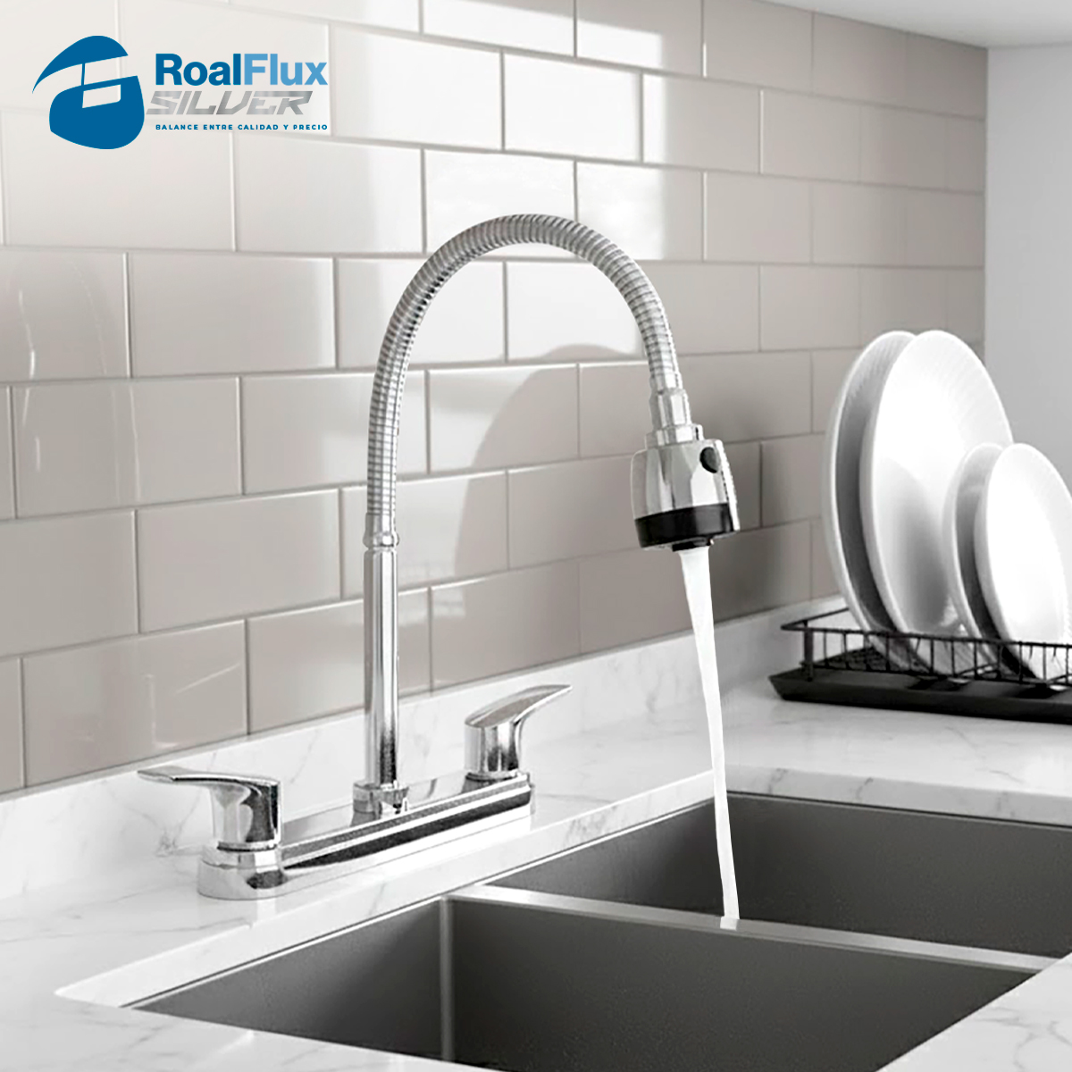 Cuello de desfogue: Flexible de acero inoxidable con aireador y suavizador de agua con switch cambio de chorro de agua