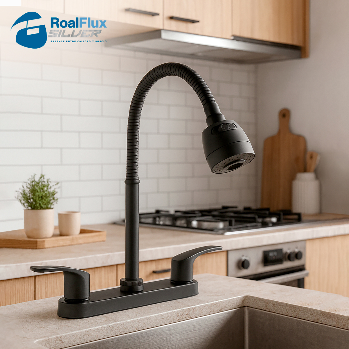 Mezcladora para fregadero 8″ negra con cuello flexible
