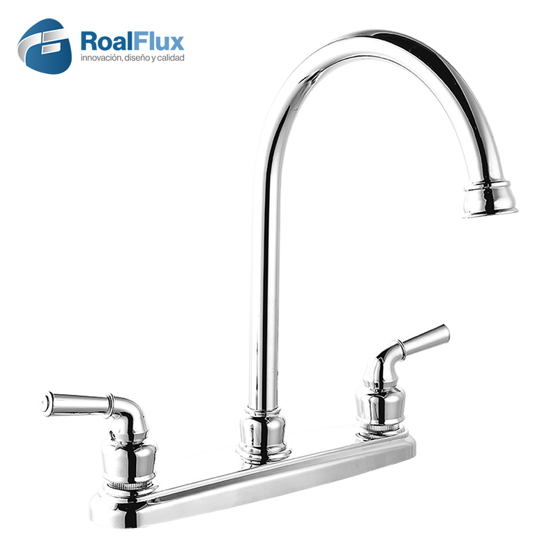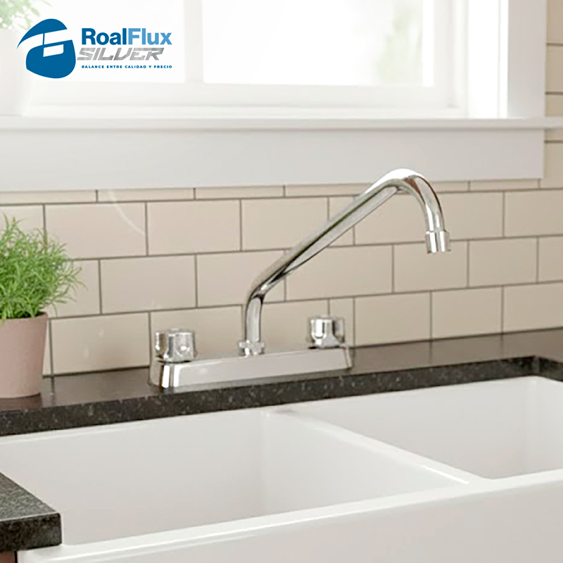 SKU: 36-Troya Categorías: Fregadero, Mezcladoras Etiquetas: 36-Troya, Acero inoxidable, Aireador, Baja presión, cromada, cuerpo acero inoxidable, Fregadero, Grifería, Maneral, Mezcladora, Mezcladora para fregadero, Nailon, RoalFlux, RoalFlux Silver, Suavizador de agua, Vástago, Vástago de compresión, Vástago de nailon