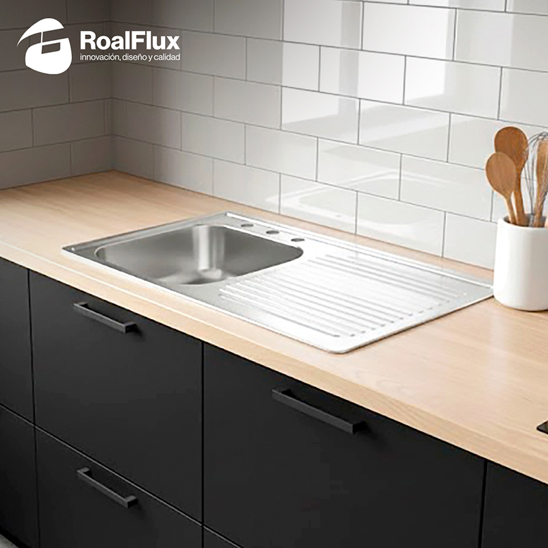 Marca: RoalFlux Forma: Rectangular Tipo de acabado: Satinado Contracanasta: 3 ½” Material: Acero inoxidable Calibre: 24