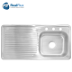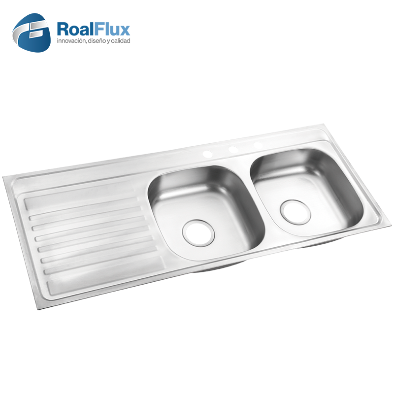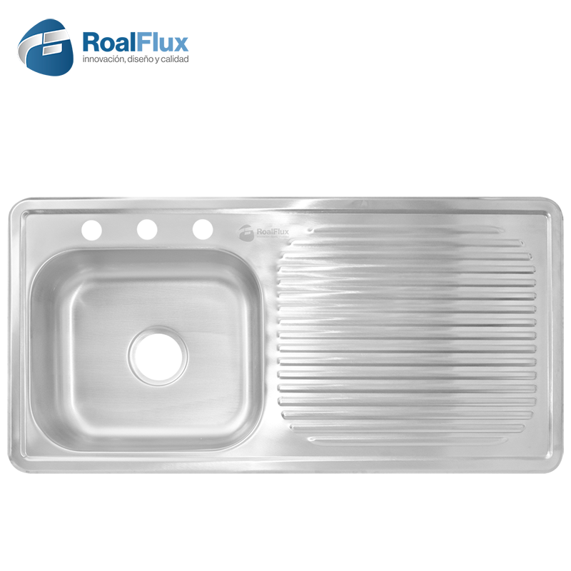 Tarja de empotrar 100x50cm escurridor derecho de acero inoxidable con tres perforaciones para grifería.