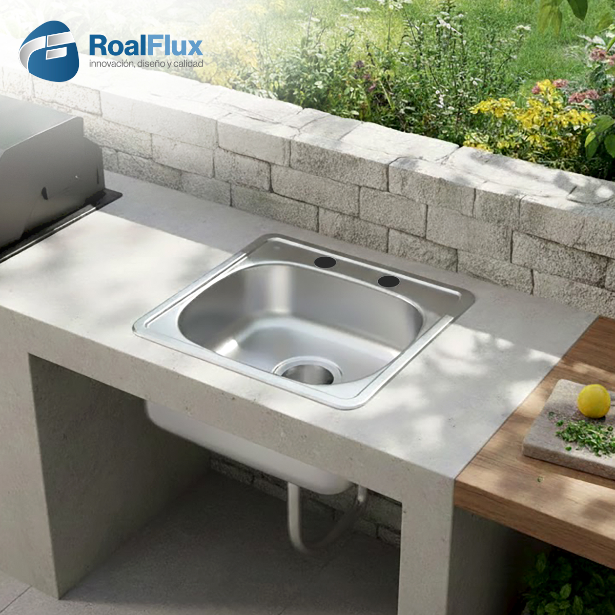 Tarja de empotrar tipo bar 38x38cm de acero inoxidable con dos perforaciones para grifería.