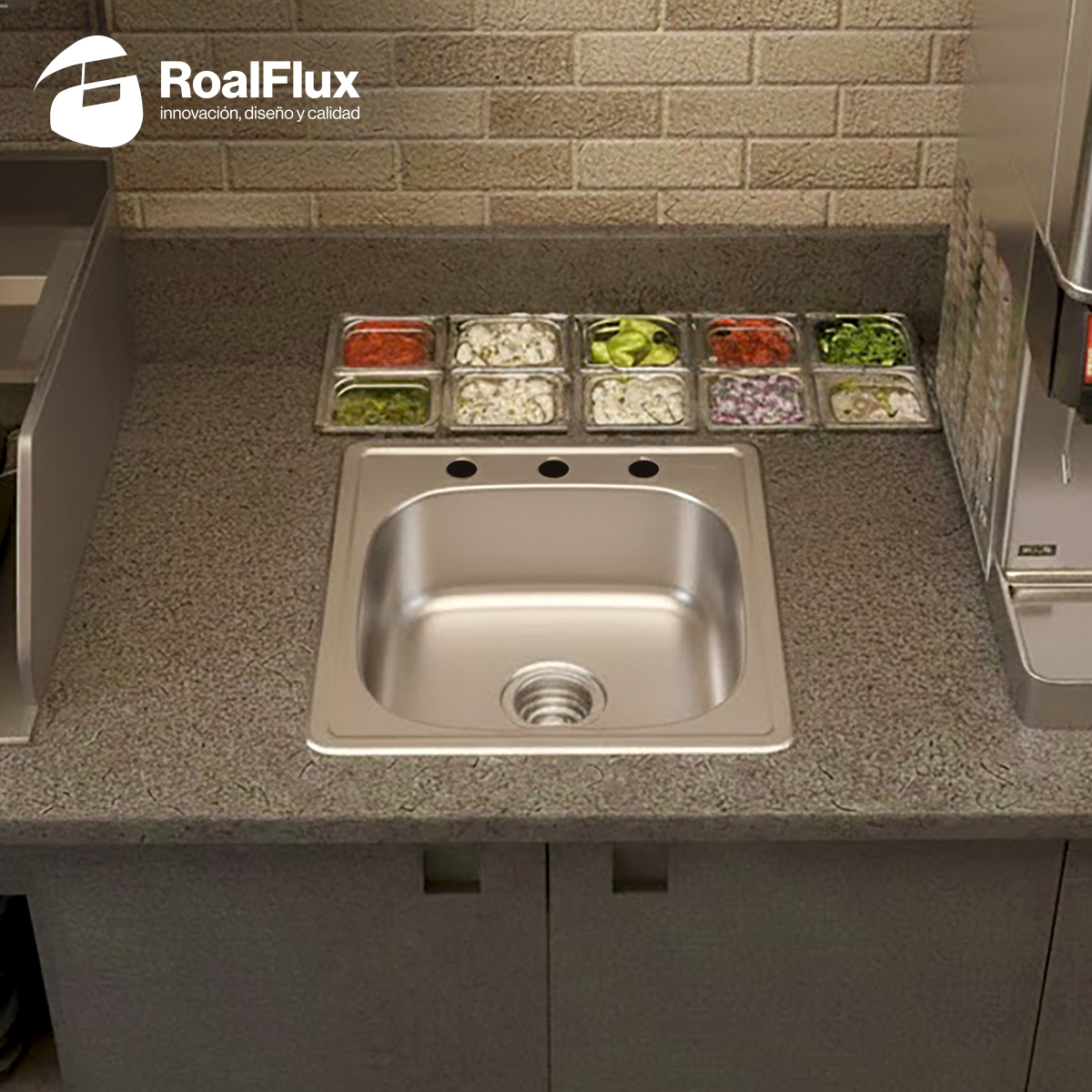 Marca: RoalFlux Forma: Cuadrada Tipo de acabado: Satinado Contracanasta: 3 ½” Material: Acero inoxidable Calibre: 24