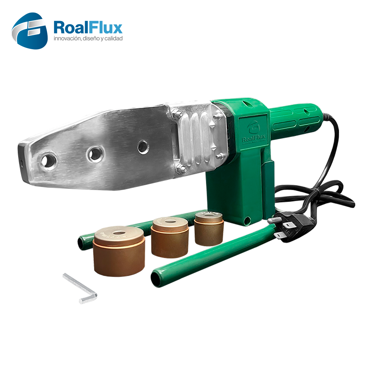 Marca: RoalFlux Incluye: 1 Termofusora 1 Base 1 Dado 1/2″ (20mm) 1 Dado 3/4″ (25mm) 1 Dado 1″ (32mm) 1 Llave allen Voltaje: 120 V Frecuencia: 60 Hz Potencia: 600 W
